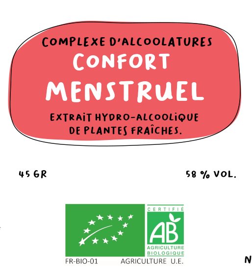 Complexe de macérations hydro-alcooliques comprenant de l’Achillée millefeuille, du Framboisier sauvage et de la Mélisse.